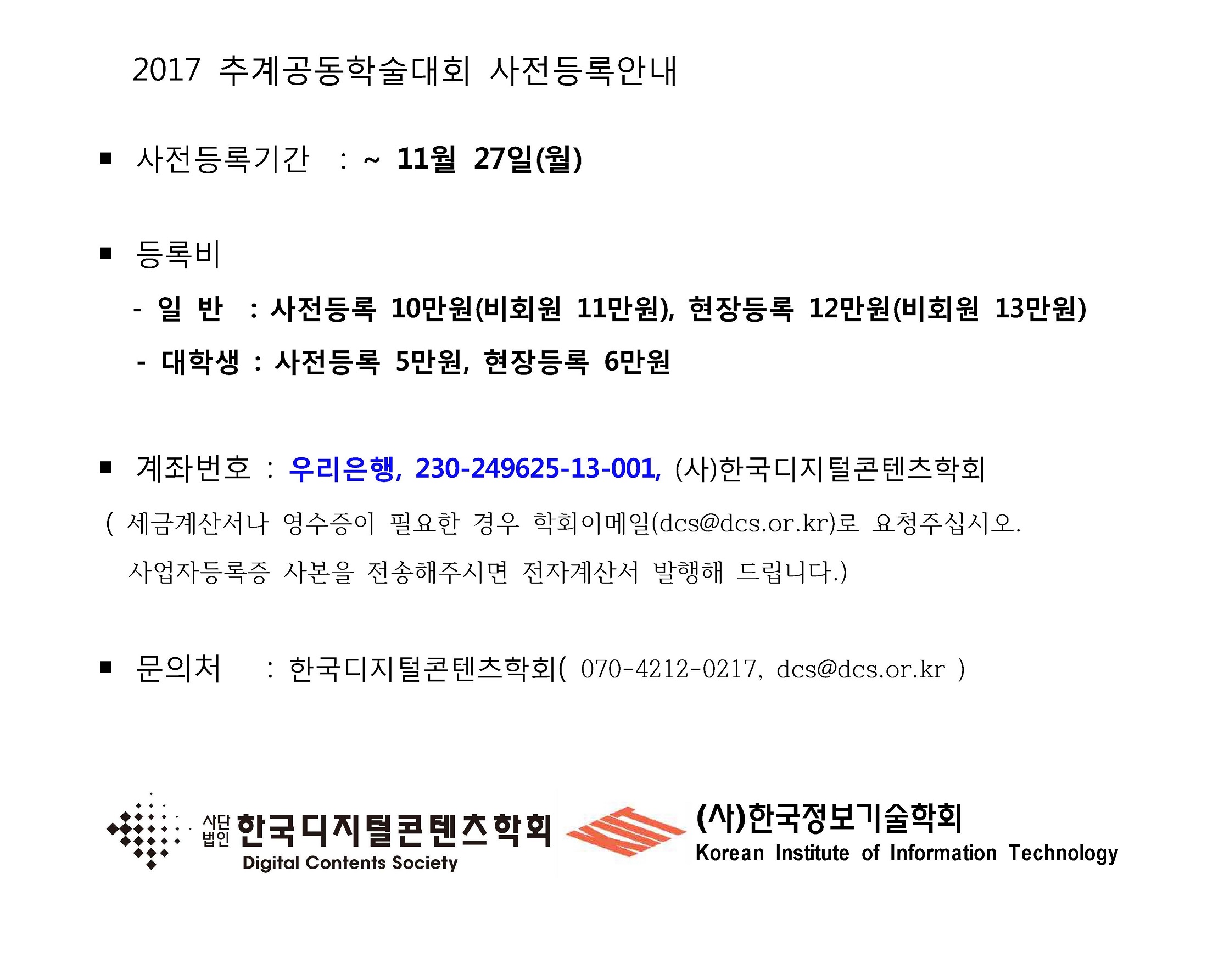 2017년도 공동학술대회 및 대학생 논문경진대회 프로그램 및 사전등록 재안내(D2세션시간변경)