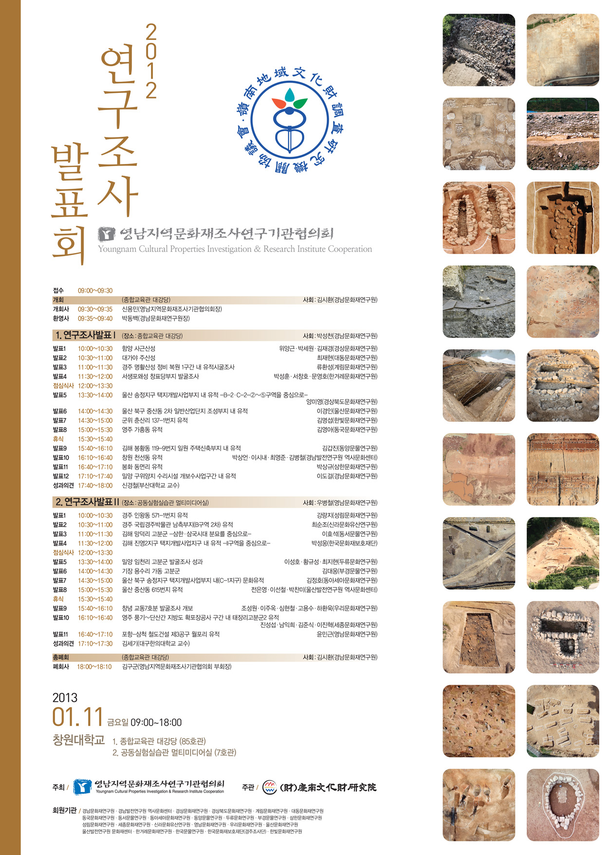 영남지역 소재 문화재조사연구기관 협의회에서 2012년도 연구조사발표회를 개최합니다. 회원 여러분의 관심과 많은 참석을 바라겠습니다.