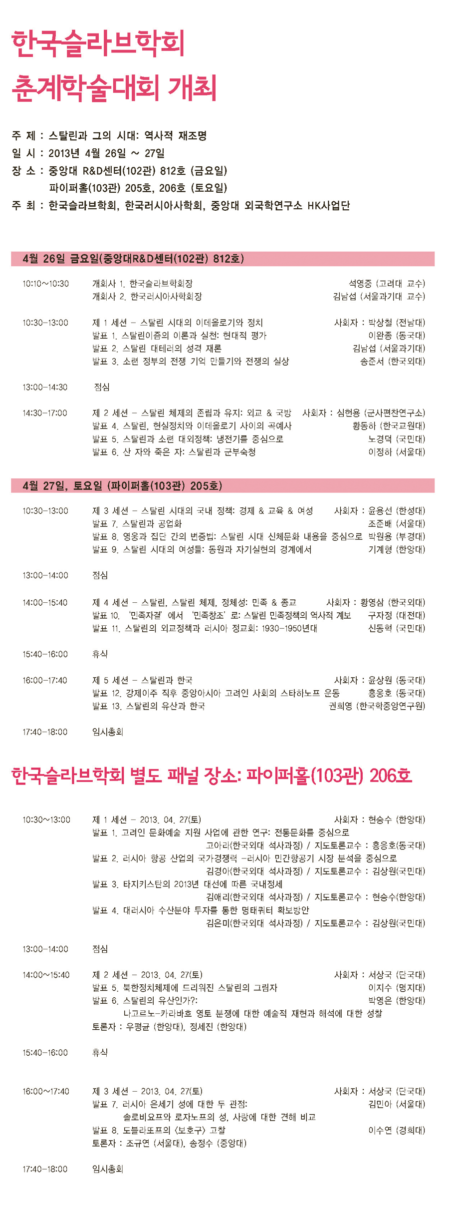 2013 한국슬라브학회 춘계학술대회 안내